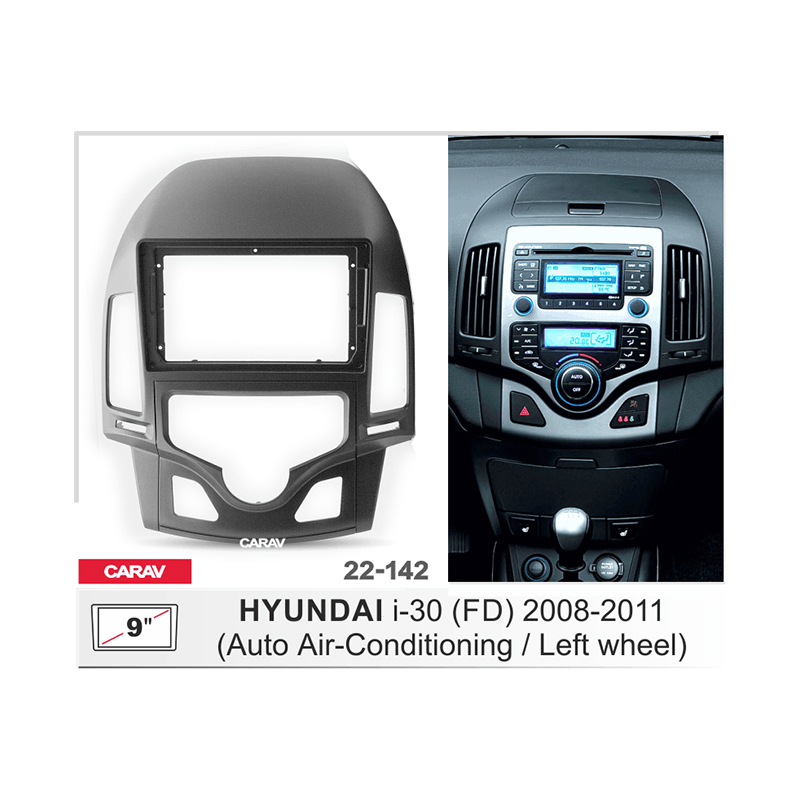 22-142 9-inch Car Audio Installation Kit for HYUNDAI i-30 (FD) 2008-2011 (Auto Air-Conditioning / Left wheel)